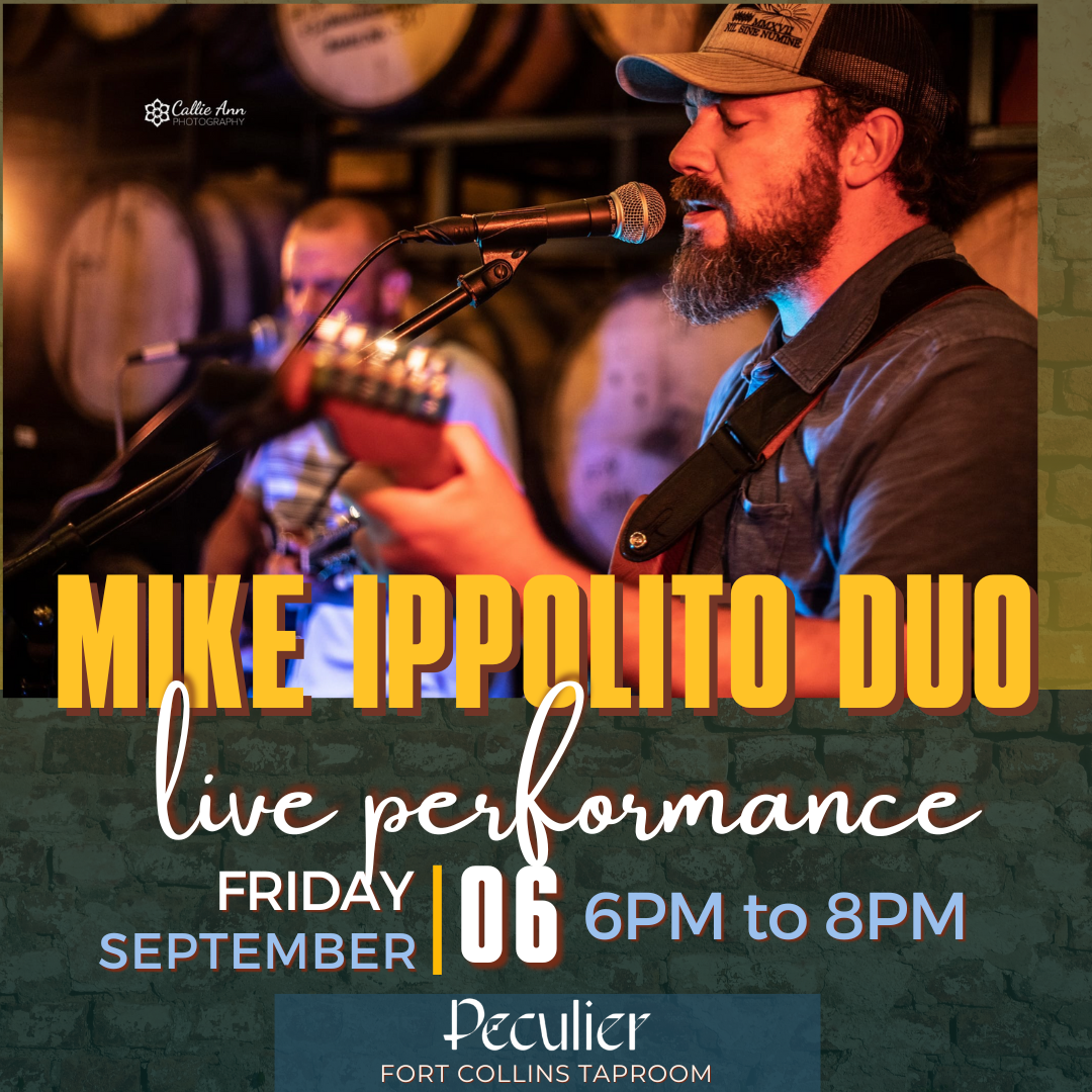 Live Music: Mike Ippolito Duo (Fort Collins)+ Add to Google Calendar+ iCal / Outlook exportThe event is finished. DateSep 06 2024Expired! Time 6:00 pm - 8:00 pm LocationPeculier Ales Fort Collins1831 E. Mulberry St, Fort Collins, CO 80524Share this event