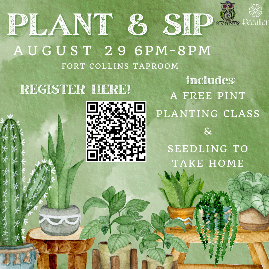 Plant & Sip with Plantiness (Fort Collins)+ Add to Google Calendar+ iCal / Outlook exportThe event is finished. DateAug 29 2024Expired! Time 6:00 pm - 8:00 pm LocationPeculier Ales Fort Collins1831 E. Mulberry St, Fort Collins, CO 80524Share this event